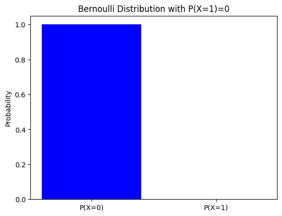 plt.title(f'Bernoulli Distribution with P(X=1)={p}')